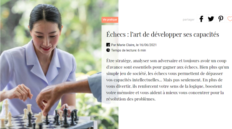 Marie Claire is a mlass circulation French language women’s magazine. On 16 June it featured a lengthy article Echecs : l’art de développer ses capacités (Chess: the art of developing your capabilities).
